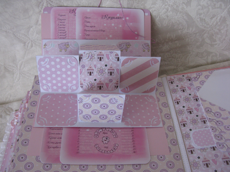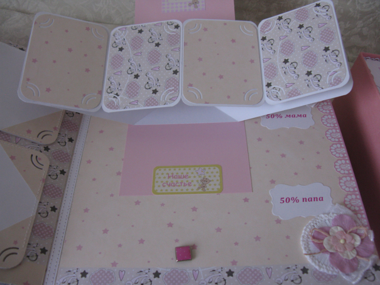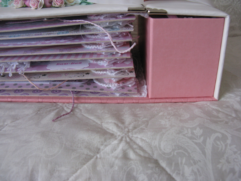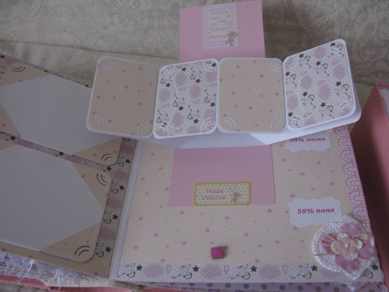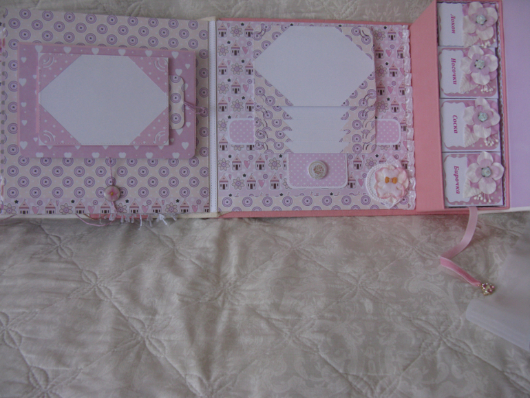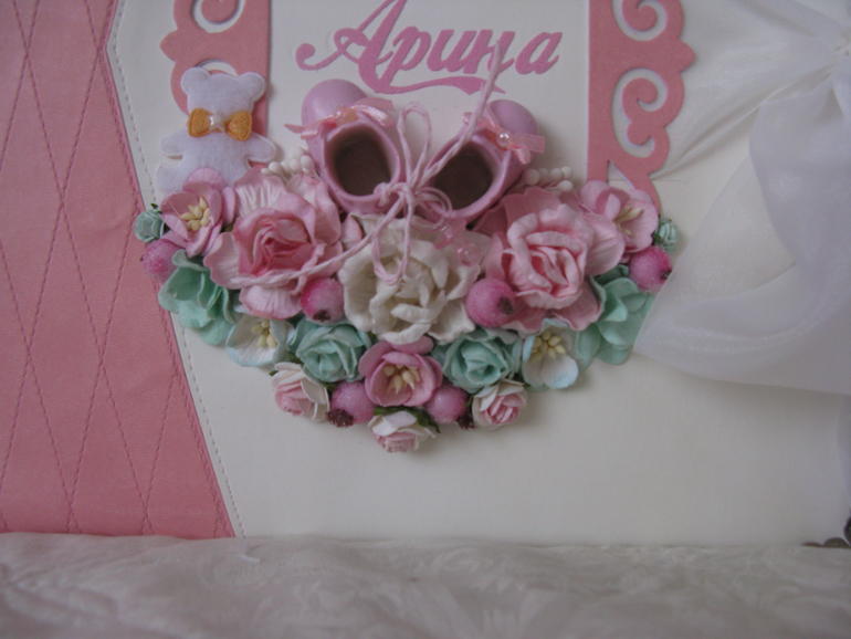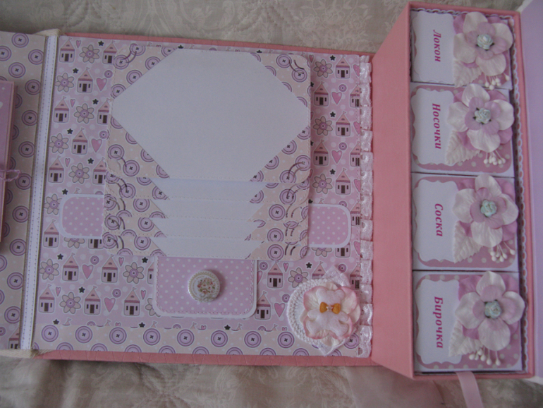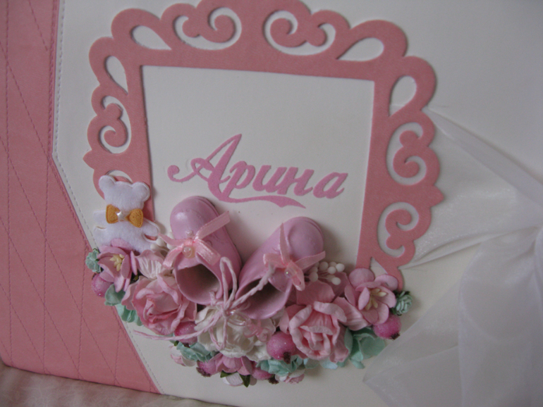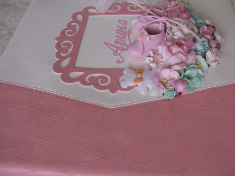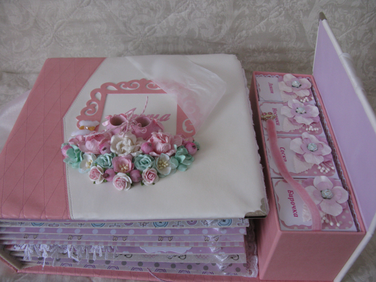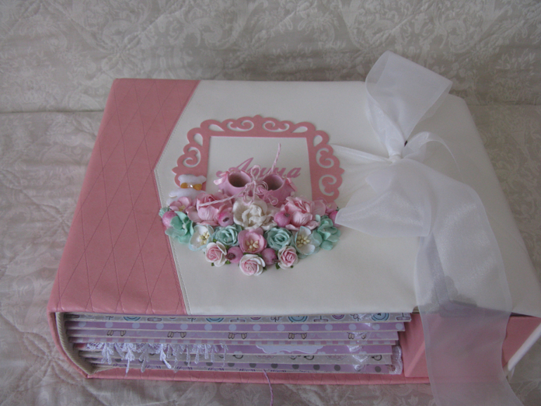 Альбомы ДетскиеУ меня сегодня дебют! Проба пера! Объединенные альбом и мамины сокровища.Вся конструкция размером 26*35 см. Альбом 25*25. Обложка комбинированная из кожзама. Вмещает 56 фото 10*15. Имя из флока.