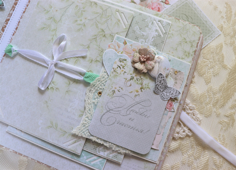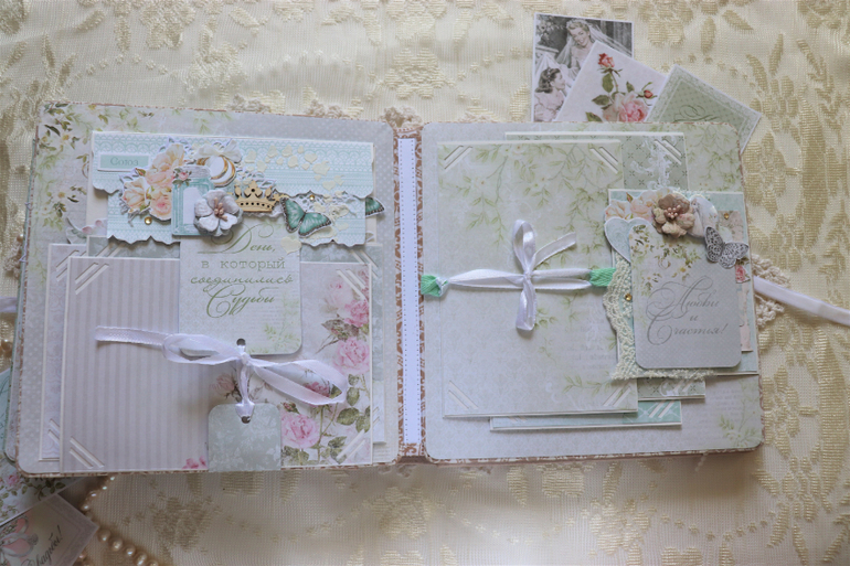 Альбомы СвадебныеНежный альбом ручной работы для свадебных или семейных фото в благородной мятно-серой-бежевой гамме!