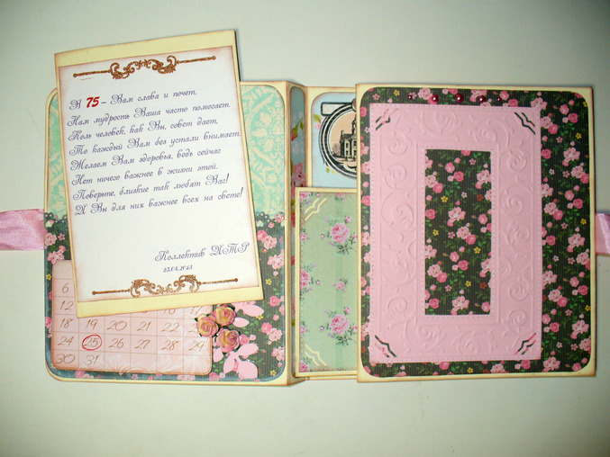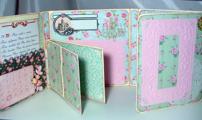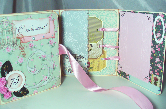 МиникиУвидев вот здесь оригинальный мини-альбом очень захотелсь сделать что-то подобное, а тут и повод появиля - юбилей моей начальницы! Не смотря а свой возраст, она ещё активно трудится на руковдящей должности и даст фору любому! Предполагается, что в этот альбом будут помещены лучшие фоографии с торжества. Расчитан альбом на 9 фотографий 10 на 15.