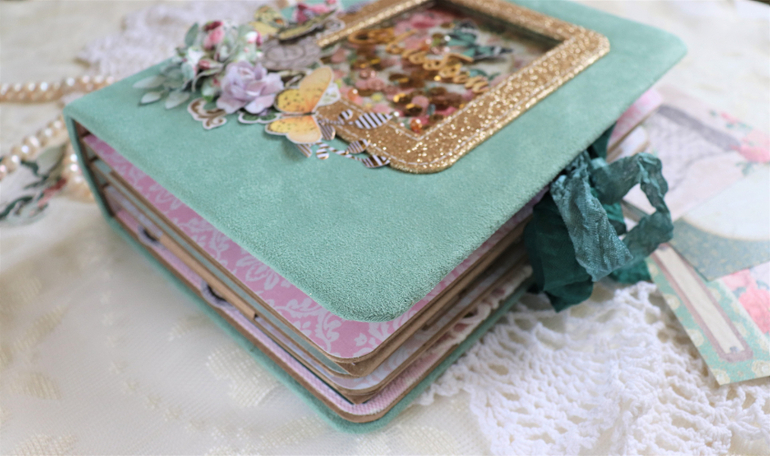 Обложка обтянута двухсторонней замшей пыльного мятного цвета - хочется тискать и тискать