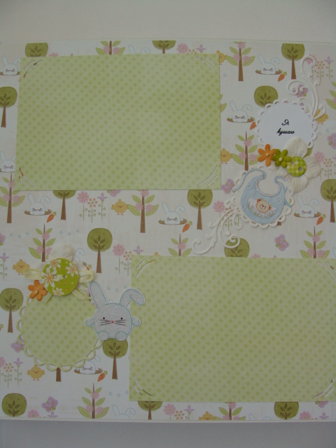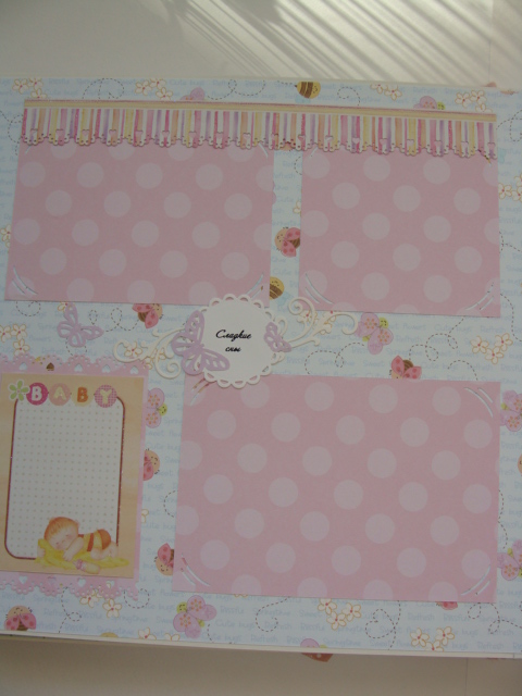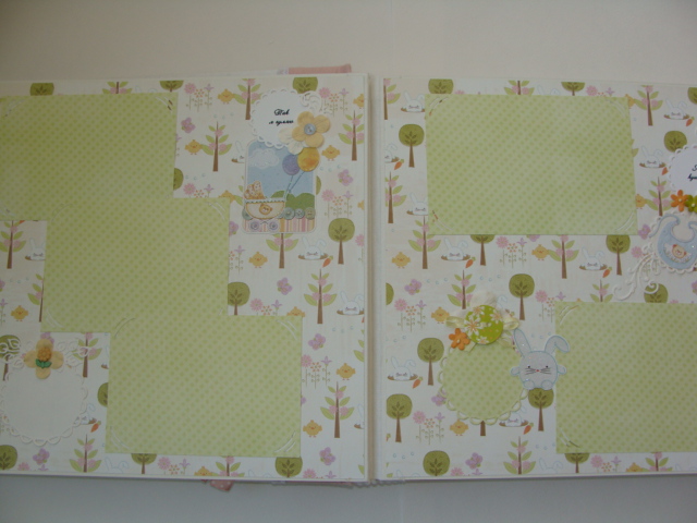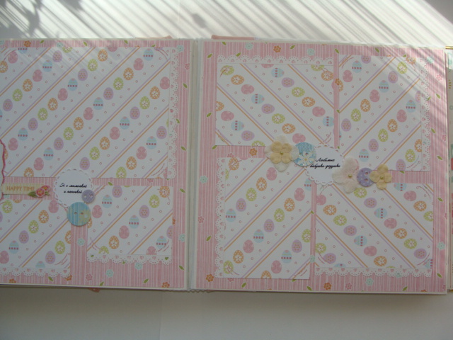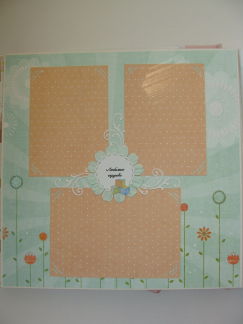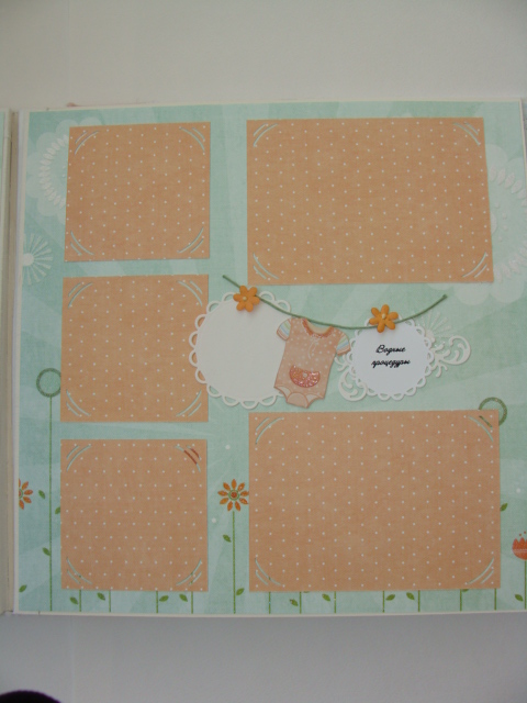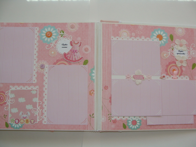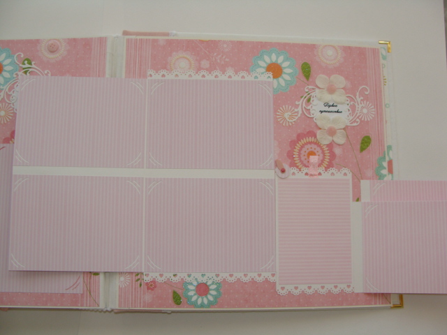 Шестой разворот. Здесь Даша поместить фоточки Алиночки с мамой-папой, бабушками-дедушками, самая большая подложечка для фото 15х20 см.