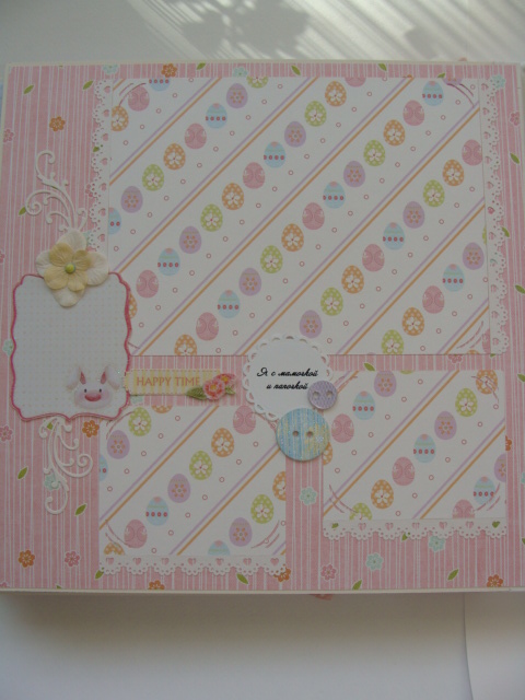 Альбом 30х30, 8 разворотов, вмещает более 70 фото, плюс место для фото на обложке. Бумага First Edition набор Spring Drops, очень красивый, девичий. Даша сама его выбирала для своей доченьки.