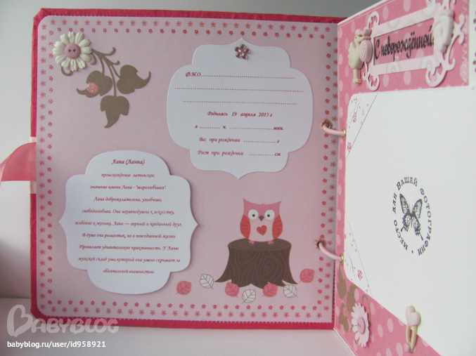 Альбомчик заказала одна очень хорошая знакомая в подарок подруге у которой родилась долгожданная дочурка.