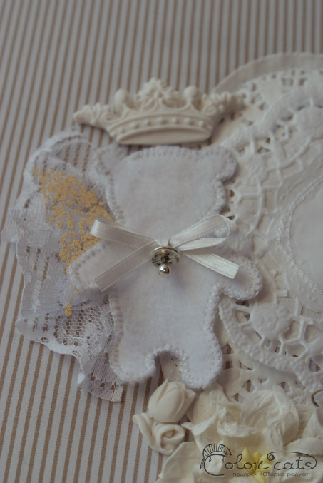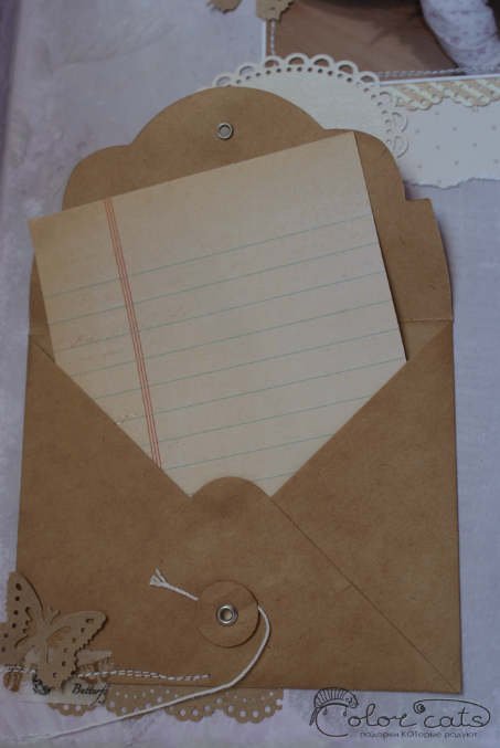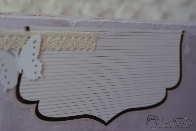 Домик открывается, внутри два кармашка, в котором хранятся теги с фотографиями членой семьи, а на обратной стороне каждого тега есть место для записи - там каждый напишет свои пожелания малышке.