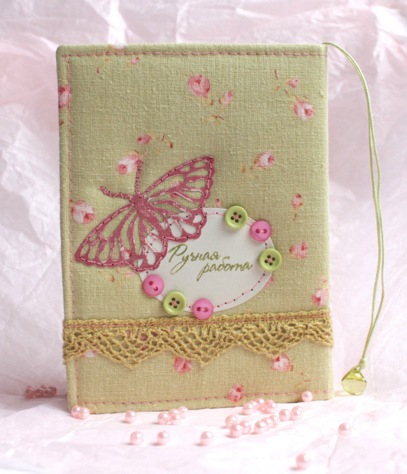 Обложка оформлена кружевом , чибордом, шнуром, цветами, микро бисером. Украшения надежно закреплены на обложке. 100 линованных листов. Блокнот обработан акриловым матовым лаком, он отталкивает воду и грязь.