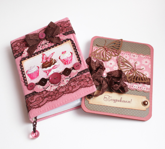 Блокнот ручной работы «Сладкие мечты» и открытка.