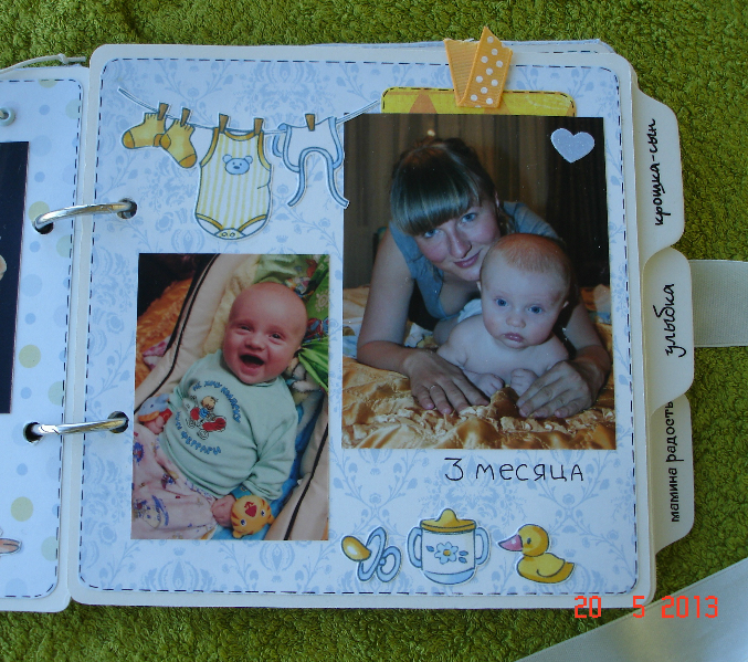 Альбомы ДетскиеЯ все никак не могу успокоиться! Просто я когда делала вот этот альбом http://www.babyblog.ru/community/post/newrukodelie/64539 то не правильно заказала размер фоток, в итоге напечатали мне вот такие малюсенькие фотки, я их отложила, а вот теперь вспомнила, решила по быстрому сделать альбомчик, ну может для бабушки малыша, например. В дело пошли обрезки и распечатанные картинки, самая простая заготовка, попробывала натирки нашинские, очень даже довольна, не хуже чем Мелисы Френсис. Самое главное, что делала я его на работе, у меня все в командировку уехали, я на телефоне в офисе сижу, вот так я потратила время с пользой. Смотрим?