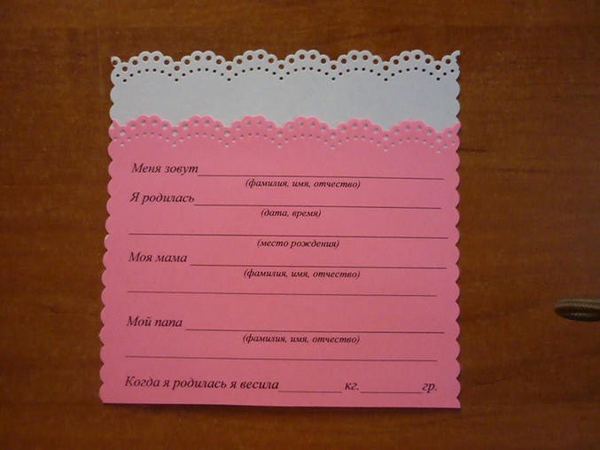 Вторая, розовая страничка с фетровой колясочкой и тегом для записи события
