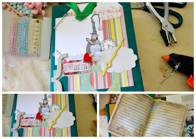 а у меня вот аткой блокнотик для Хендмейдера)))все в нем есть))))на обложке стрелочки,часы -это как нас всегда времени не хватает !Символичная надпись с ЛЮбовью!Картинка с овечкой будет везде))