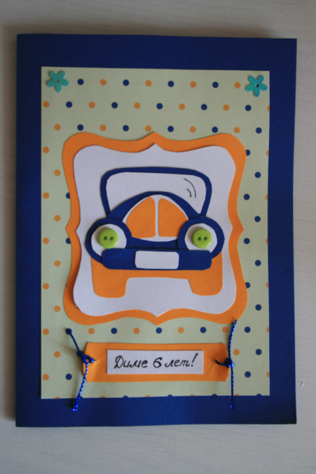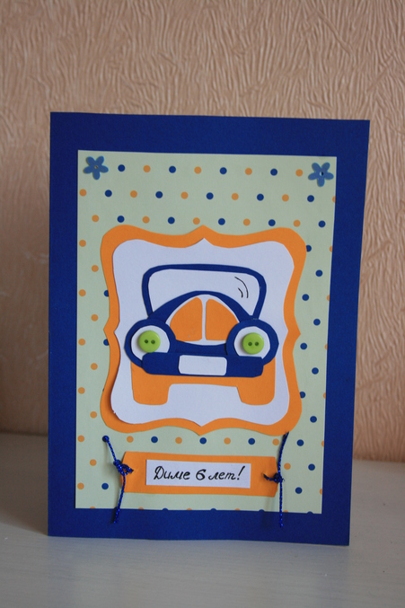 Сделала свою первую открыточку для племянника к Дню его рождения. Не думаю, что он ее оценит, но я получила массу удовольствия! В процессе ее изготовления поняла, что у меня проблемы с чувством симметрии, я не умею ровно резать и что мне не хватает всяких специальных приспособлений для скрапа)). Так что она неидеальна. Делала, глядя на открытку, которую нам подарили к ДР сына. Так что идеи не мои.