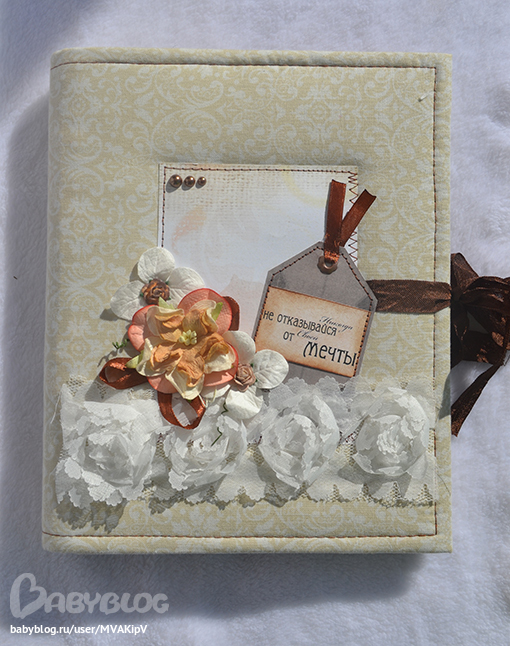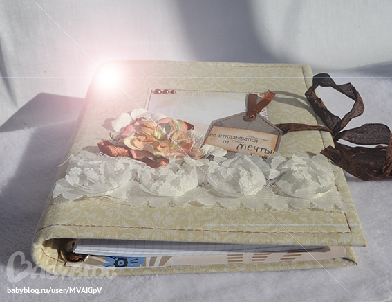Мне нравится! Очень нежный получился! Возьму себе на заметку обклеивание серединки тканью, а то я бумажную полоску приклеивала, и при открытии она некрасиво топорщится(
