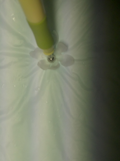 На фото сверху видна выходящая нитка в составе. Вытаскиваем и вешаем на прищепку просушиться.