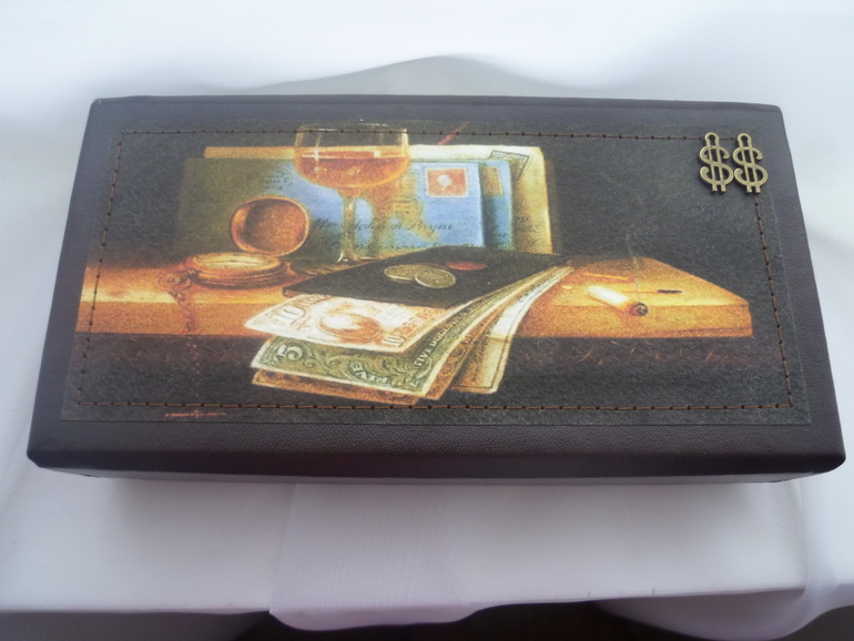 у меня коллега недавно сделала себе купюрницу декупажную с такой картинкой, тоже так здорово