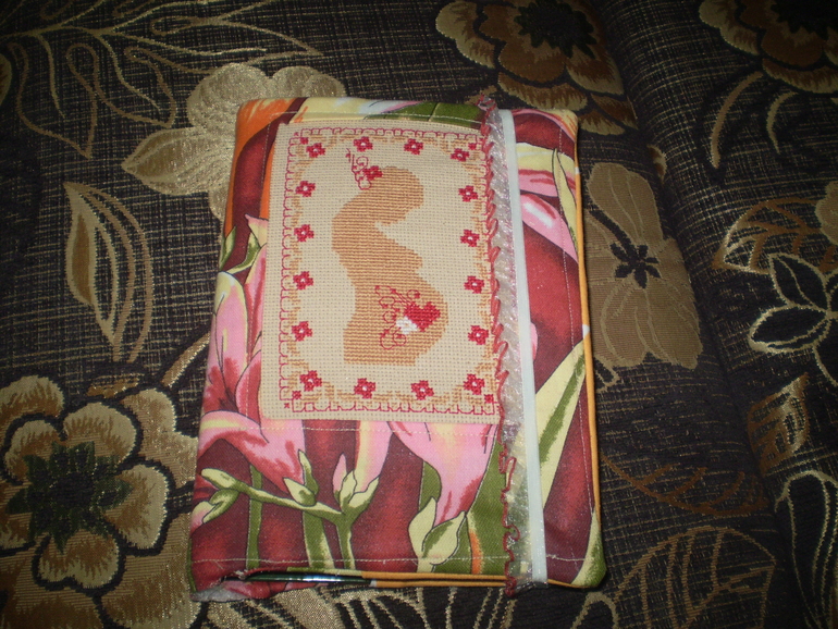 Что я делала не так?Почему так натянуты края?Что шов кривой,можете не писать-видно невооружённым глазом,но я исправлюсь!:)))Сначала пыталась простегать,но не могла понять,как сделать,если имеется вышивка на обложке.Какой-то он весь криво-перекошенный((((
