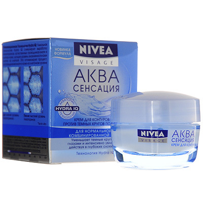 я на данный момент пользуюсь гелем Люминэ(веки от него слипаются((), а иногда миндальное масло просто наношу) вместо крема...(предворительная борьба с морщинками:-))) почитаю про нивею.
