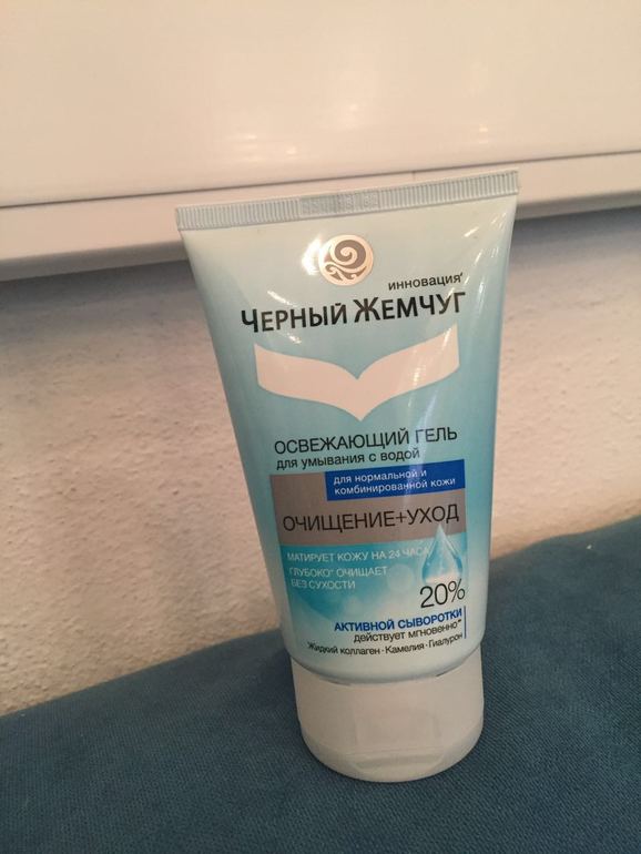 Гель/пенка для умывнияВсем доброго времени суток. Хочу поделиться впечатлениями о моем новом -геле для умывания Черный жемчуг, называется Гель для умывания для нормальной и комбинированной кожи, этот гель получила в подарок на 8 марта, пользуюсь уже месяц.