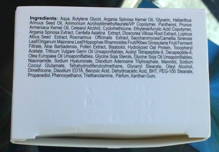 Крем увлажняющий 30+ был выбран зимой,когда кожа нуждается в большем увлажнении.Но в первую очередь,меня интересовали белки ( пептиды) в составе,так как хотела начать пользоваться продукцией anti- age.В целом,состав не плох,до люкс не дотягивает,но и не претендует.Крем-- рабочая лошадка,он реально работает.Увлажняет посредственно,что удивило.На ночь дополнительно увлажняла кожу смесью масел.А днём вполне обходилась только этим кремом под тональный или ВВ крем.Упаковка очень необычная и стильная.Крем не соприкасается с кислородом,удобный дозатор- помпа.Объём 50 мл мне хватило на 3 месяца ,даже на 3,5.Вчера он закончился...Запаха практически не имеет,приятный,не тяжёлый.Мне подошёл идеально.