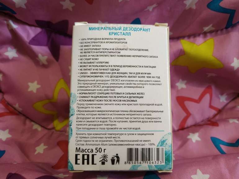 Дезодоранты-антиперспирантыВ последнее время, стала все больше обращать внимание на натуральные косметические средства, в том числе на дезодоранты. Много статей стали попадать мне на глаза, где пишут о том, что некоторые дезодоранты антиперсперанты, могут вызвать даже рак груди, так как в составе имеются много вредных веществ. Наверное, это, и моя беременность стали толчком к тому, что я занялась выбором натурального дезодоранта. Читала в инете много информации, много разных роликов посмотрела, и много составов разобрала. В итоге, свой выбор остановила на минеральном дезодоранте Deo Ice. В составе лишь минеральные квасцы, природные соли, в них нет консервантов и вредных добавок. Этот минерал обладает антибактериальным, противовоспалительным и ранозаживляющим действием. При применении он немного вяжет, и подсушивает кожу. Соответственно дезодорант с его содержанием, не закупоривает поры и не вызывает восполнения, даже на только что побритой коже. Deo Ice прекрасно подходит даже аллергенным людям, не вызывает реакции.