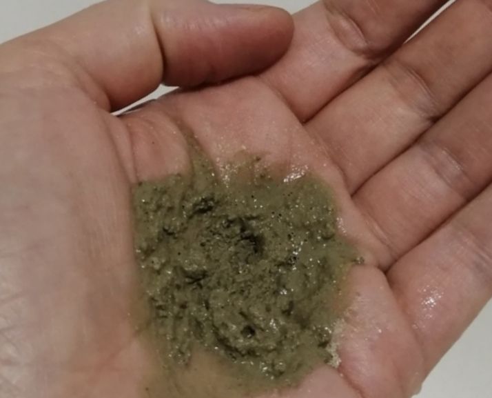 Всё это «месиво» свободно и равномерно размазывается по поверхности кожи, позволяя проводить легкий массаж. Достаточно 2-3 минут.