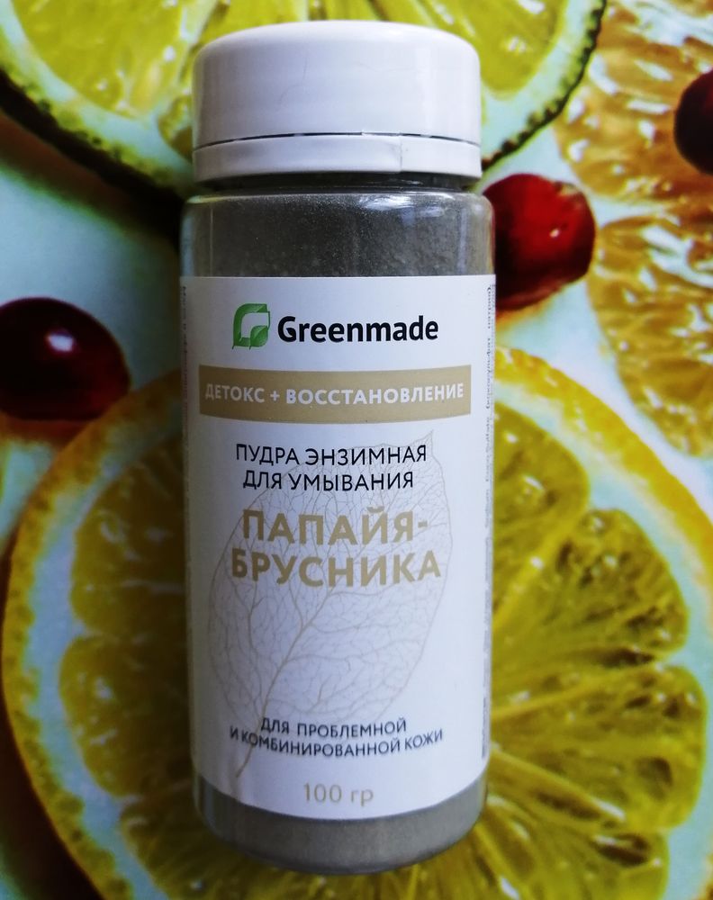 Сегодня расскажу об ЭНЗИМНОЙ ПУДРЕ ДЛЯ УМЫВАНИЯ «ПАПАЙЯ-БРУСНИКА» Greenmade из серии ДЕТОКС+ВОССТАНОВЛЕНИЕ для проблемной и комбинированной кожи.