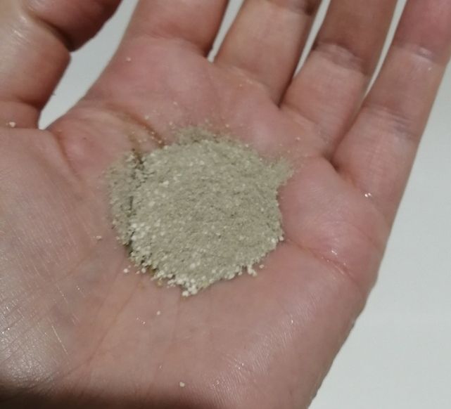 Итак, это порошок бурого цвета без особого запаха. Ну если только едва слышимые нотки эфирного масла иланг-иланга.