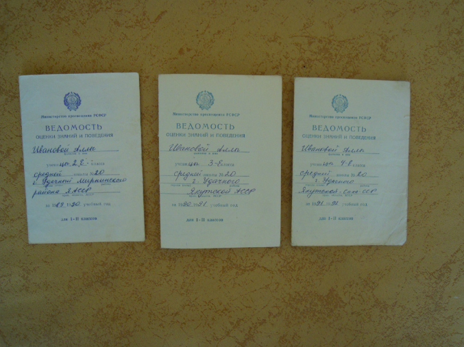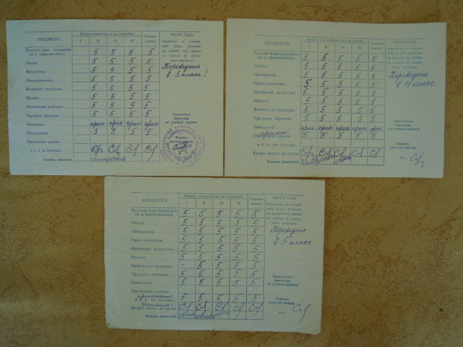 Ведомости после окончания учебного года! А все таки здорово было, был стимул учиться. Радовались всем этим грамотам и похвалам. Хотелось быть лучше, тянулись к знаниям.