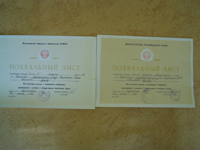 Похвальные листы, выдавались за хорошую учебу. Обратите внимание на герб и аббревиатуру РСФСР