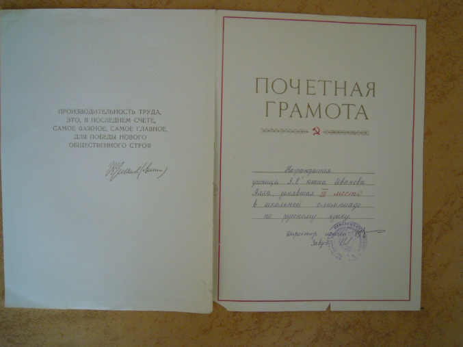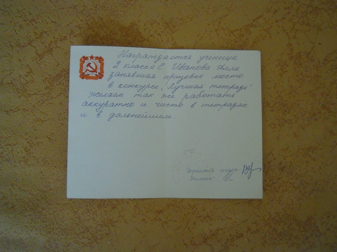 Что осталось с советских времен. Остальное папа почему- то пустил в топку. А сколько всего было: и анкеты, и поделки, и стихи я писала на патриотичесие темы. Я уж не говорю про игрушки, сколько их было. Жалко так. Очень хотелось бы сейчас посмотреть.