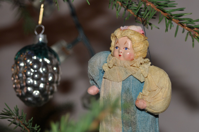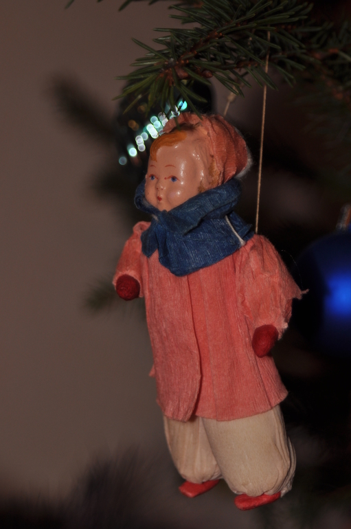 Можно я тоже присоседюсь? У нас много старых игрушек сохранилось, годов с 50-х, мамины еще. Это такая сказка... И без них я елку и НГ себе не представляю. Мама часть игрушек отдала нам когда мы переехали, и я так рада))) Хотела вот эти ватные в бумажных одежках отреставрировать, но боюсь начинать))) Есть еще гирлянда из фонариков и звезда красная с ними, но пока не работает.