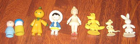 А куколки, что крайние левые на нижнем фото - целые наборы "школа" и "семья". Жаль, что не сохранились такие сокровища.