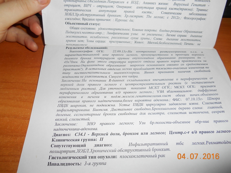 У папы плоскоклеточный рак и зно правого легкого, а так же 15 декабря 2015 года у него случился инсульт.старалась лечить как могла, но лекарства выписывают всё дороже...Он не ходит.Не говорит.Даже сидеть у него нет сил! Кушает только жидкую пищу.Не понимает в основном даже что от него просишь и постоянно спит и при этом приходится постоянно держать его на обезболивающих.