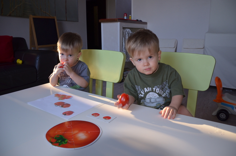 К горшку пока не приучены. Густые блюда едят сами, но супами пока кормят взрослые. Говорят много, выразительно, но ничего не понятно