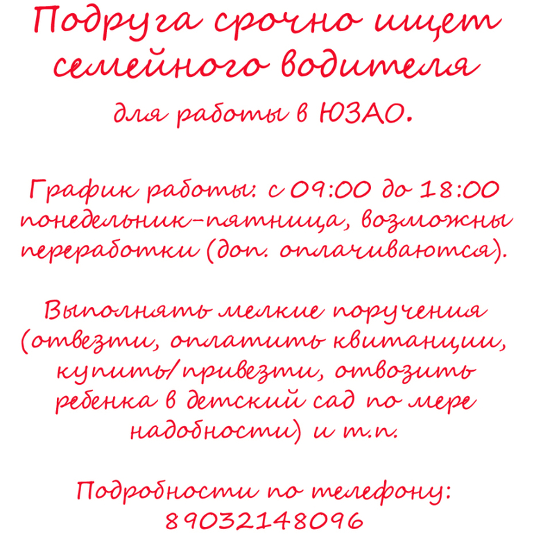 - Выполнение различных поручений (уборка снега с и рядом с автомобилями, поездка за продуктами и т.д.);