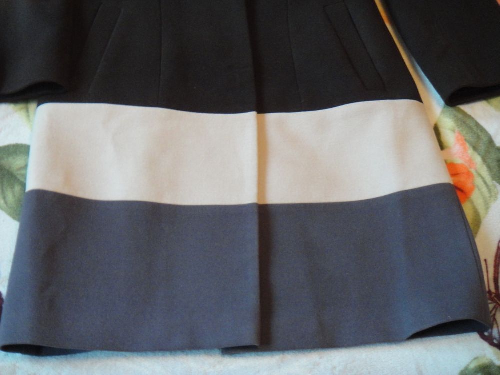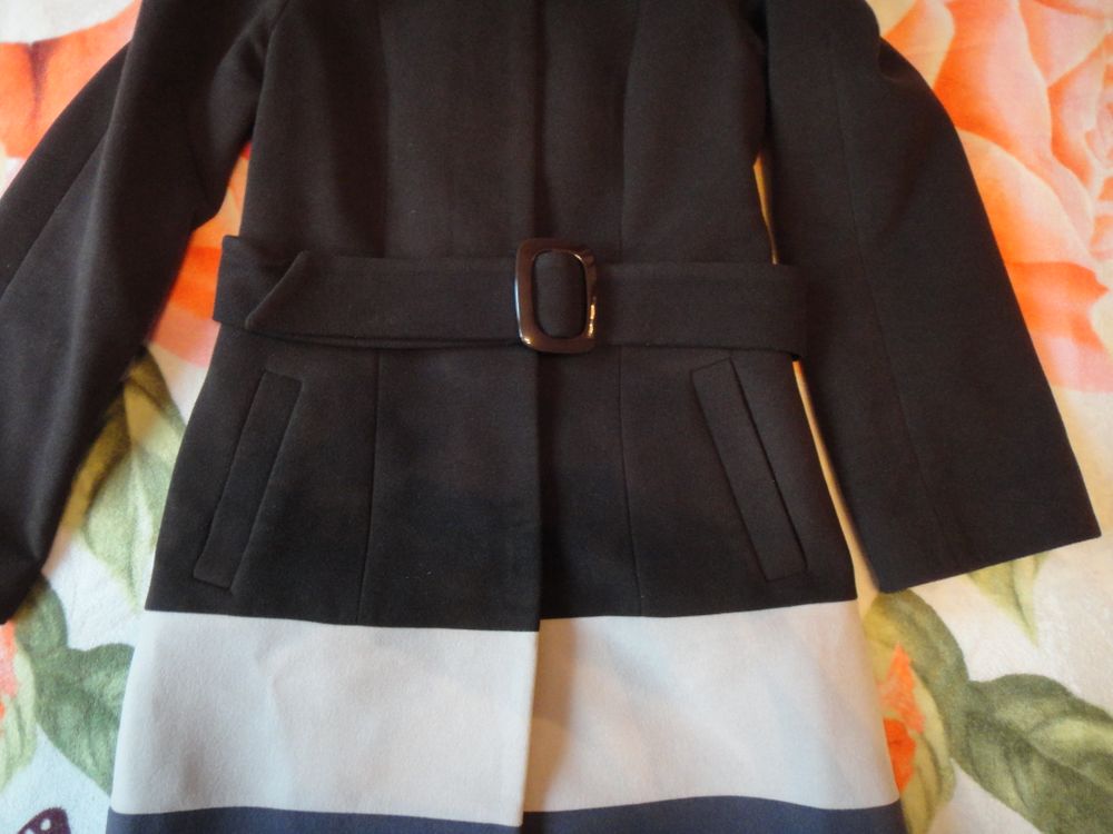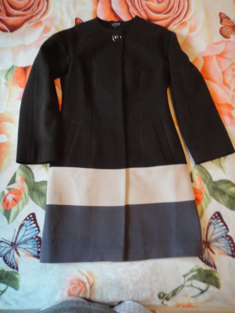 2.Трехцветое пальто (шоколад, беж и серый) Lider, р.44. Застежка - 1 верхняя пуговица + 4 скрытых, 2 кармана-обманки, в комплекте пояс. Состав: верх - 80% шерсть, 12% полиамид, 8% кашемир, подкладка - 100% полиэстер. Б/у мало. Длина по спинке - 90 см., ПОГ - 45 см. Экв. 3000 руб.