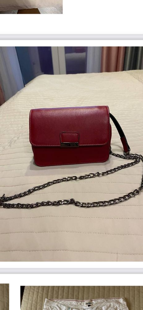 Красная сумка кроссбоди. 2 вместительных отделения и 1 карман ещё. Небольшая, но поместиться много. Материал похож на кожу. Переобмен,я не носила. Экв 2000