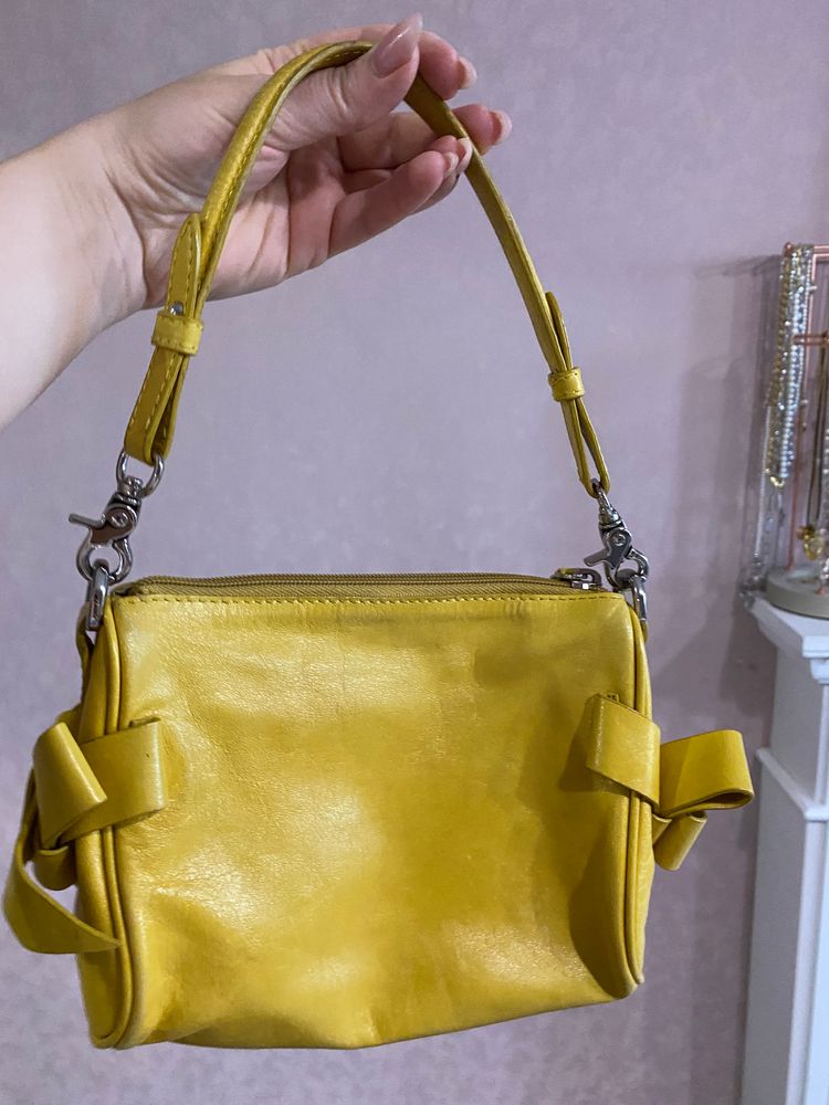 Маленькая сумочка горчичного цвета, на короткой ручке, досталась довеском к обмену платья, хозяйка меняла парой, не мое. Экв 1000