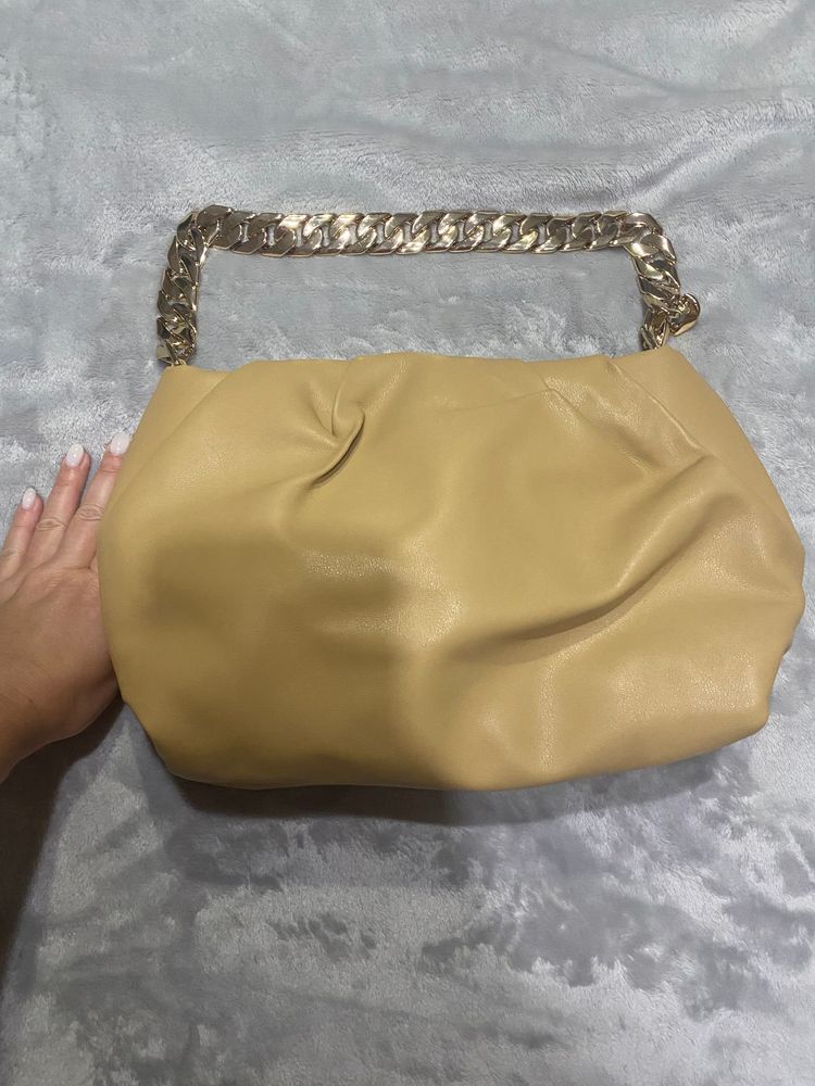 новая бежевая сумка mango иск кожа, в стиле bottega -"пельмень" на несъемной цепочке. Без бирки. 4000