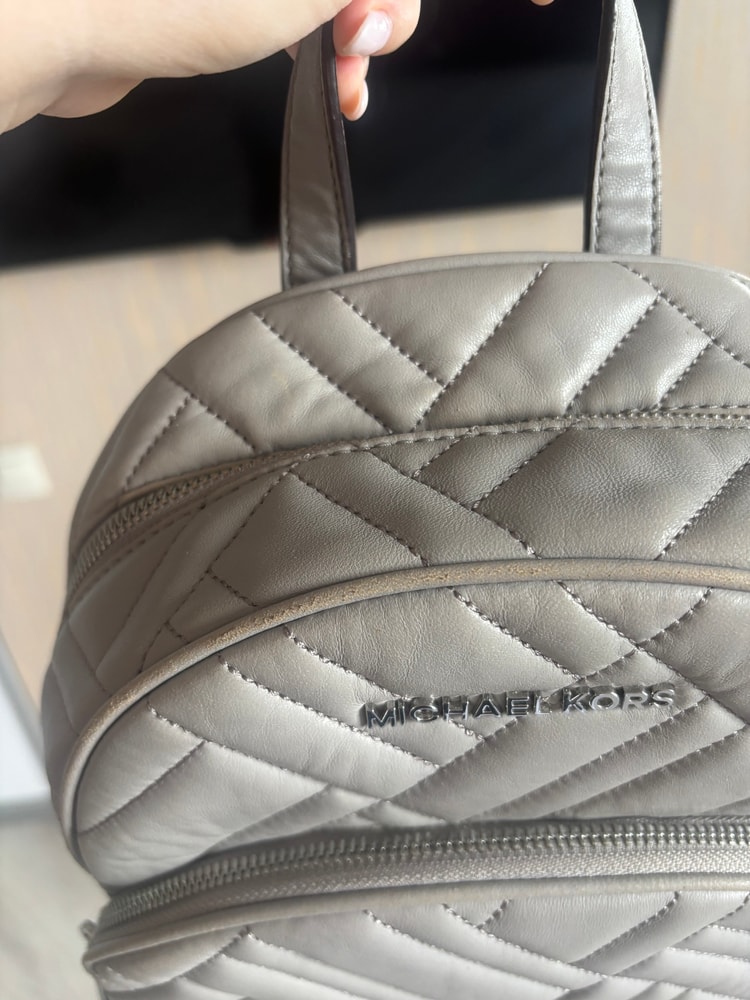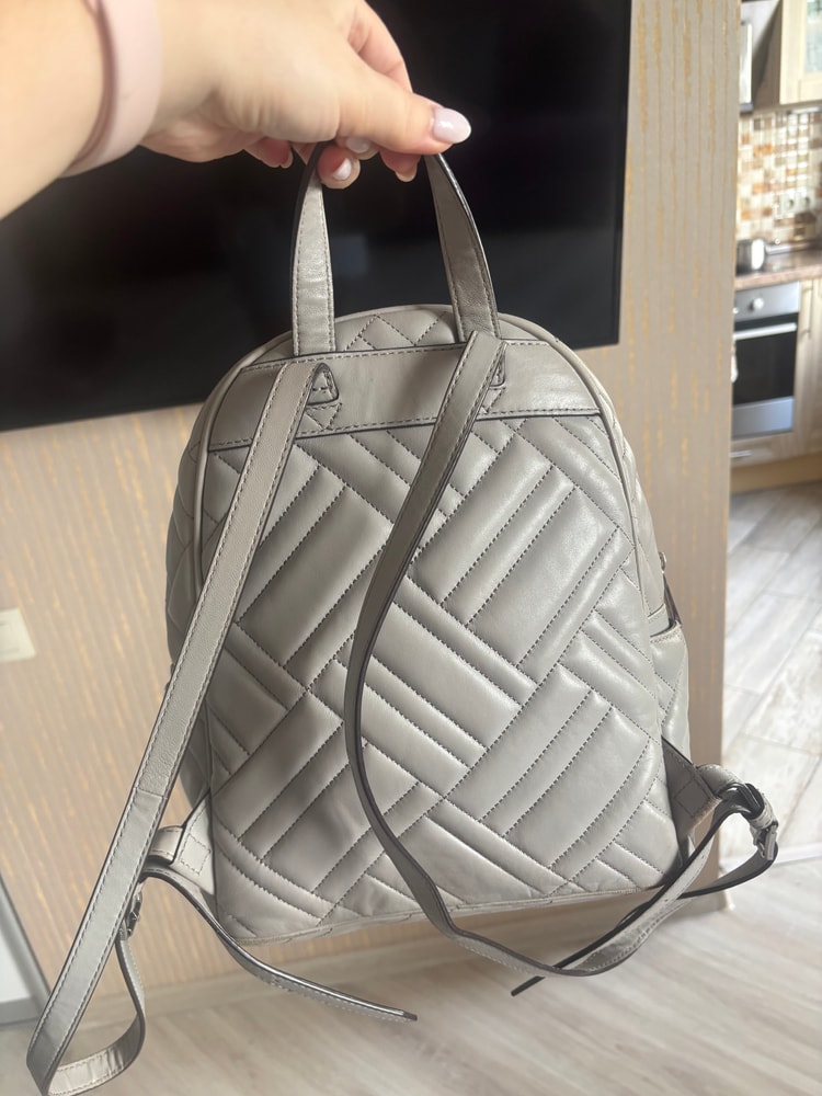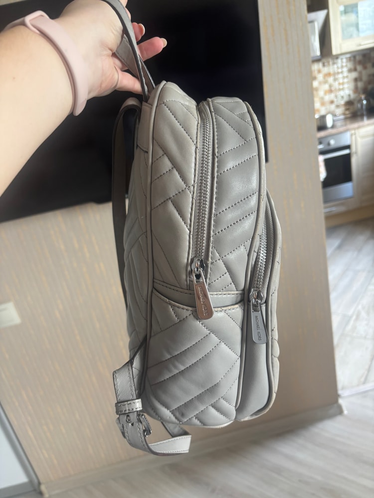 Рюкзак Michael kors оригинал, цвет серо-бежевый тауп подо все, кожа мягчайшая и нежнейшая, одно отделение основное и кармашки. Выходила с ним очень редко, но все равно по бокам кое-где потертости , сфотографировала специально очень близко, в глаза не бросаются. Экв 15000, меняю выборочно . Фото нормально не вставить, несколько ниже добавила