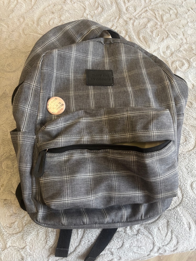 рюкзак серый в клетку, легкий и мягкий, без значка) 1000