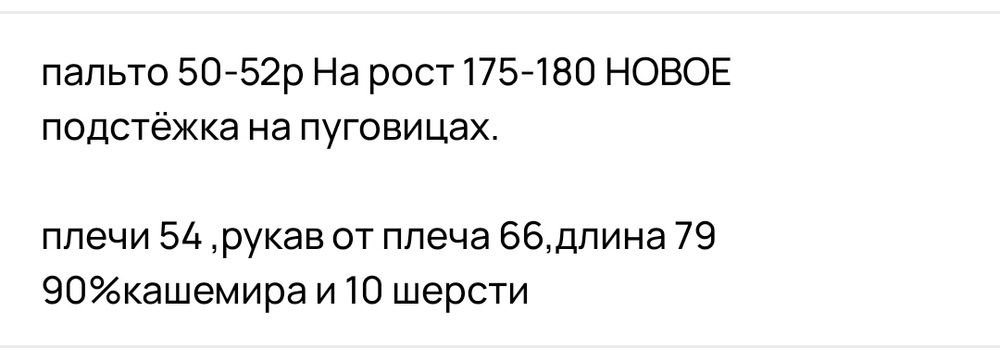 Полупальто мужское из кашемира Fuzer, 50-52 р. Новое. Экв.14 тр