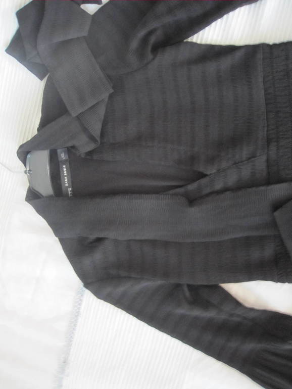 113) Кофточка с атласным поясом и пуговицами. Неудачное фото - она ровно черная, красивая очень - 400 руб