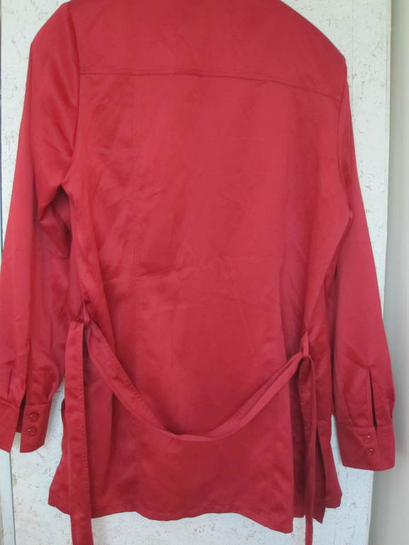 97) Блузка, одета один раз, удлиненная, красно-бордовая, гладкая ткань, удлиненная, ниже бедер. сзади в области талии затяжка (последнее фото) - 500 руб