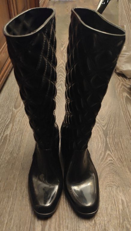 1 - Сапоги резиновые. Очень классные и красивые, на ноге смотрятся аккуратно. Меняла здесь, но мне узки в стопе. Р. 37. Экв. 1000