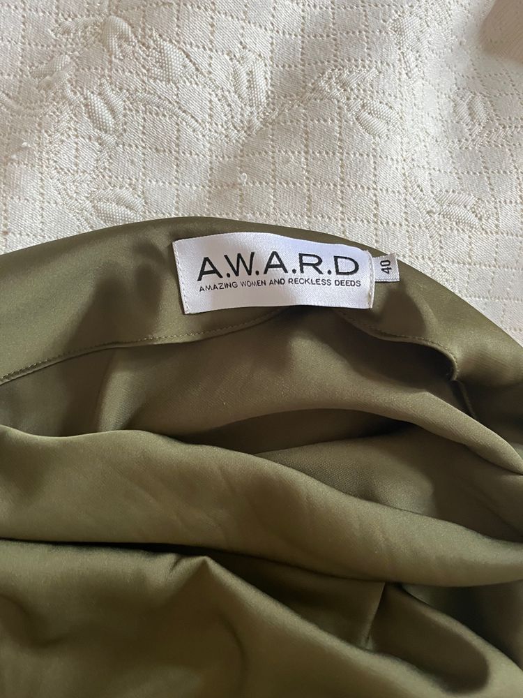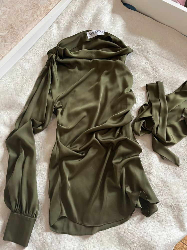 Платье AWARD (40р) 100% шелк . Болотного цвета . Один рукав . Пояс. В состоянии нового.-7000р ( стоило в 2 раза дороже ) встречи по догов