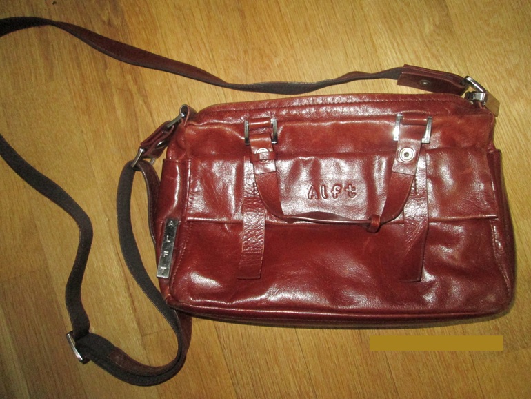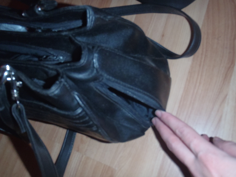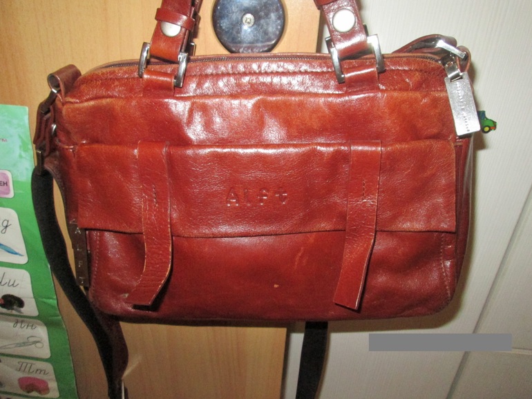 5) сумка маленькая. Наверно кожа, ручки потрескались.Одно отделение