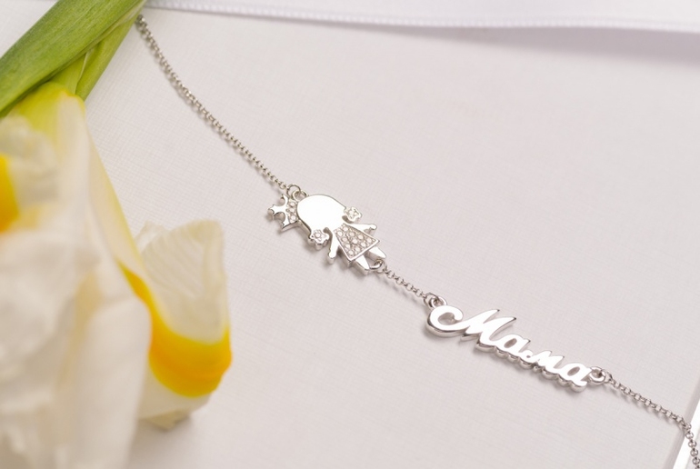 Браслет серебро с фианитами Мама с девочкой принцессой р.20 (за счет замка подойдет на р.17-20) вес.2,58 гр.
