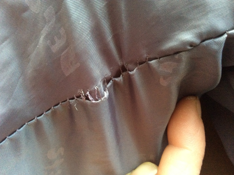В итоге на куртке пятна, сзади лопнула силиконовая нашивка, на манжетах катышки, светоотражающая обтачка местами облезла. На штанах также облезла обтачка, есть потертости на низах штанин и потерта ткань на коленях. На следующий день обнаружились еще и дыры в подкладке.