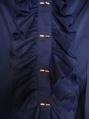 Застегивается полностью на кнопки. На воротнике, манжетах и внизу затягивается кулисами.