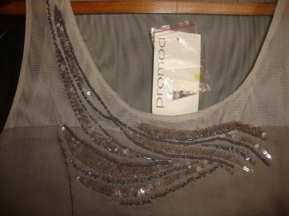 Маркировка 40 (на наш 46р). Цвет: капучино-кремовый. На груди платье красиво расшито паетками и бисером. Платье не просвечивается, внутри у него хлопковая подкладка.