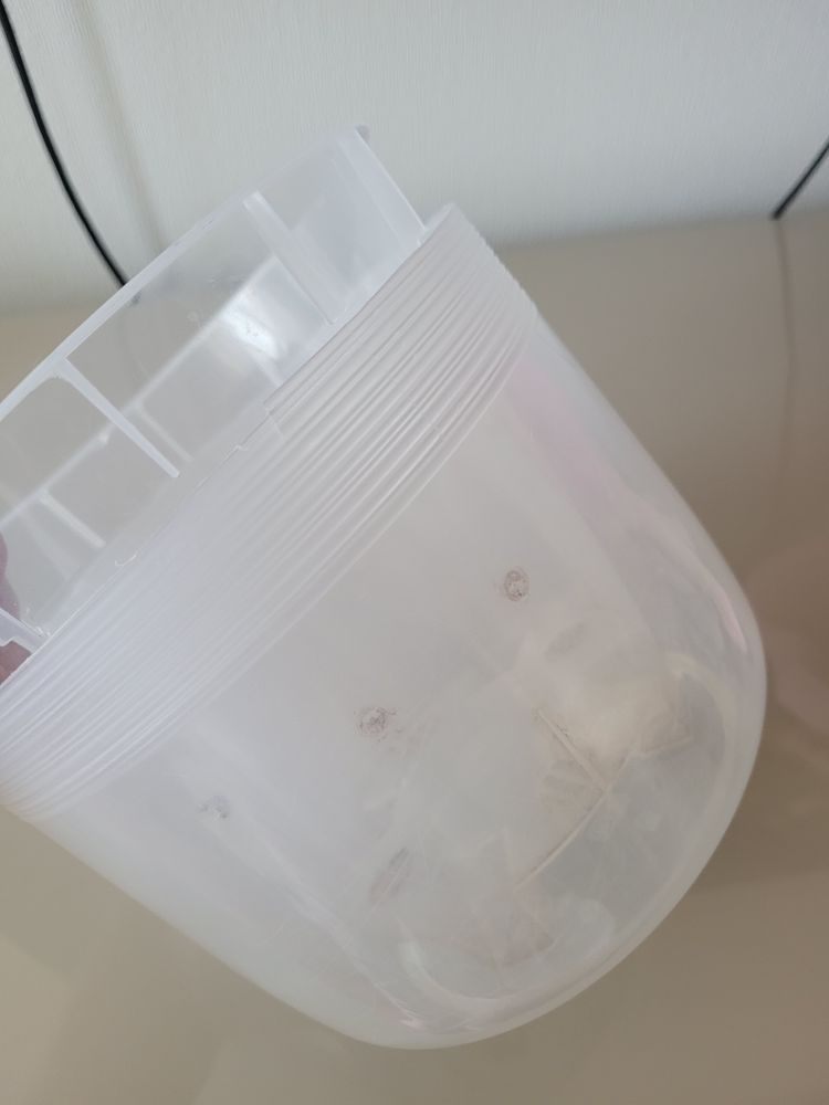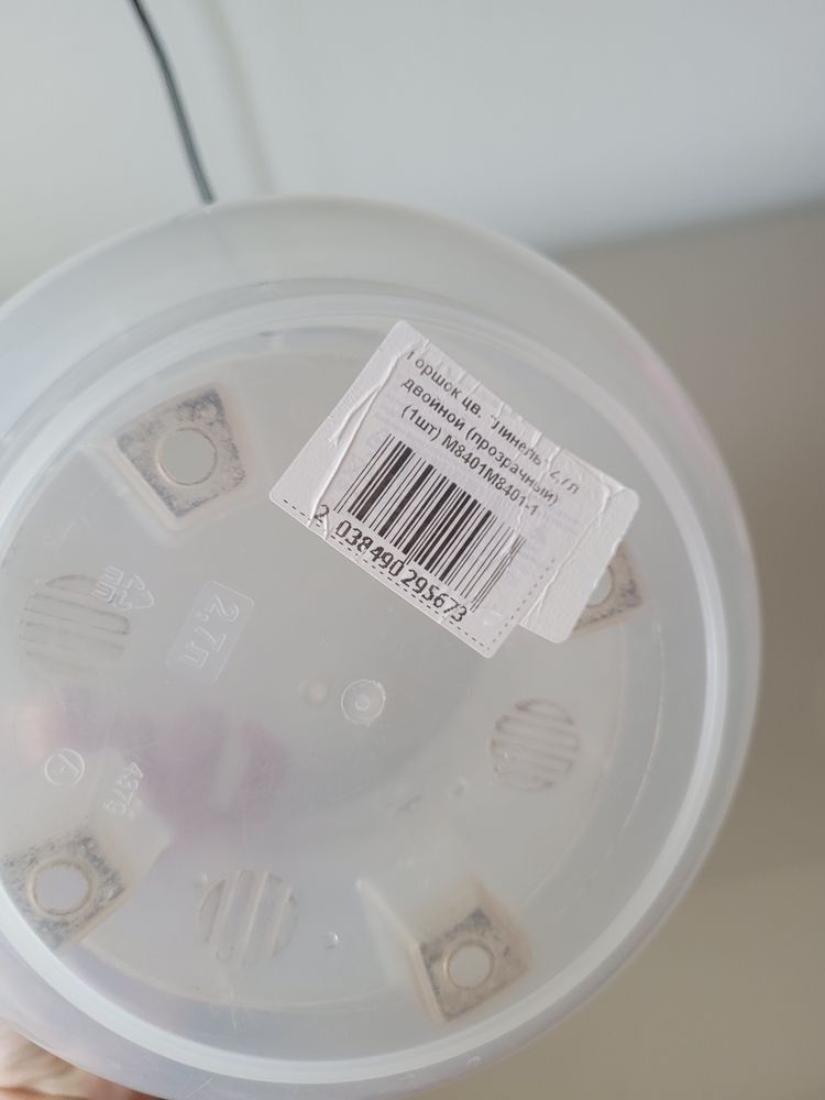 Прозрачный горшок с автополивом довольно большой. Пришлось обрезать края внешнего горшка т.к. вода туда стекала и не испарялась вообще. Обрезала как могла :)) не ровно получилось.. 100 руб